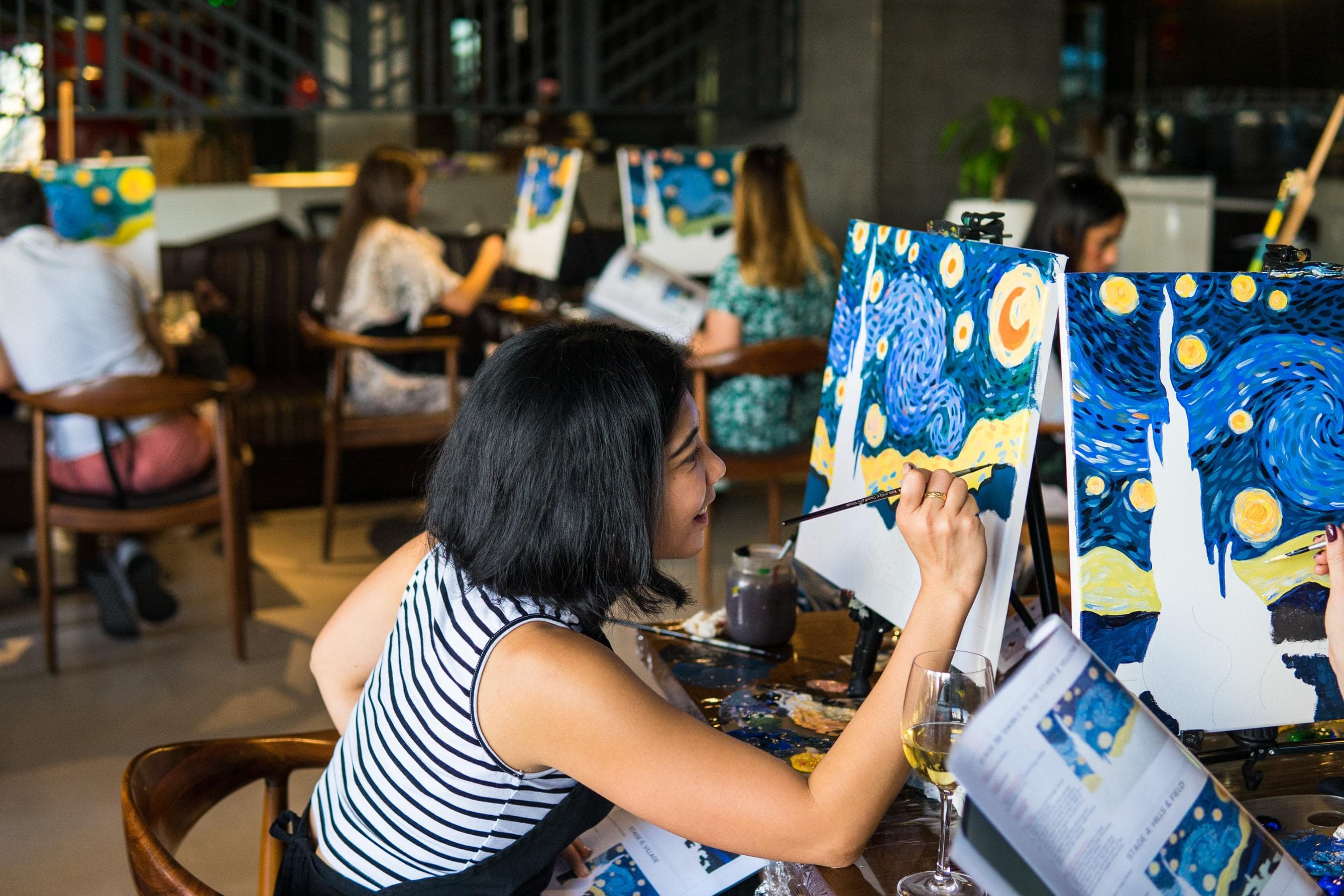 Joining is simple! Click on this link to explore our Paint & Sip calendar and pick your perfect paint night. Choose your painting, add it to your cart, and complete your booking. Need help? Just reach out—we’re happy to assist you through!
