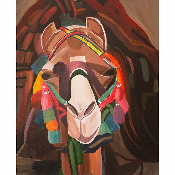 The ‘Camel’ painting offers a sophisticated depiction of this iconic animal, enhanced by vibrant, colourful tassels that introduce cultural richness. With bold hues and intricate details, it showcases a modern artistic approach while honouring Middle Eastern traditions.