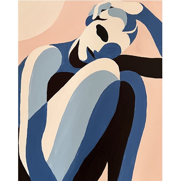 ‘Modern Reflection’ beautifully captures the essence of introspection through its minimalist abstract design. Geometric shapes elegantly form the silhouette of a woman seated in deep thought, symbolising the complexity and beauty of the human experience. The harmonious interplay of forms invites viewers to embrace their own moments of contemplation, suggesting that stillness can lead to clarity and insight. This painting serves as a reminder that in the quiet spaces of our minds, we can find inspiration and discover the positivity that shapes our journey.