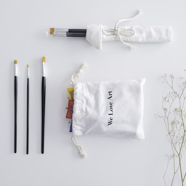 - Two sets of Three We Love Art branded paint brushes with nylon heads in all the sizes and shapes you need to paint this masterpiece; Having had tens of thousands of people experience We Love Art, we understand the ideal brush for you