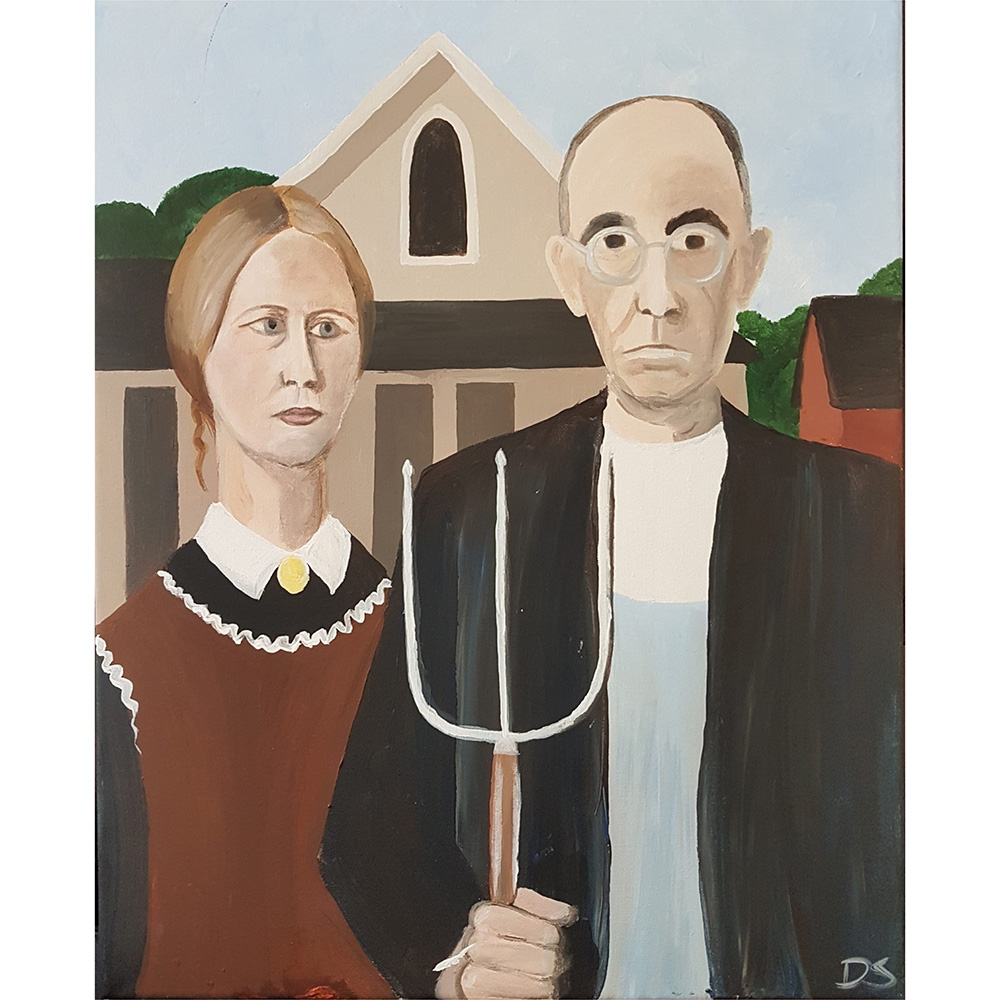Paint “American Gothic” by Grant Wood