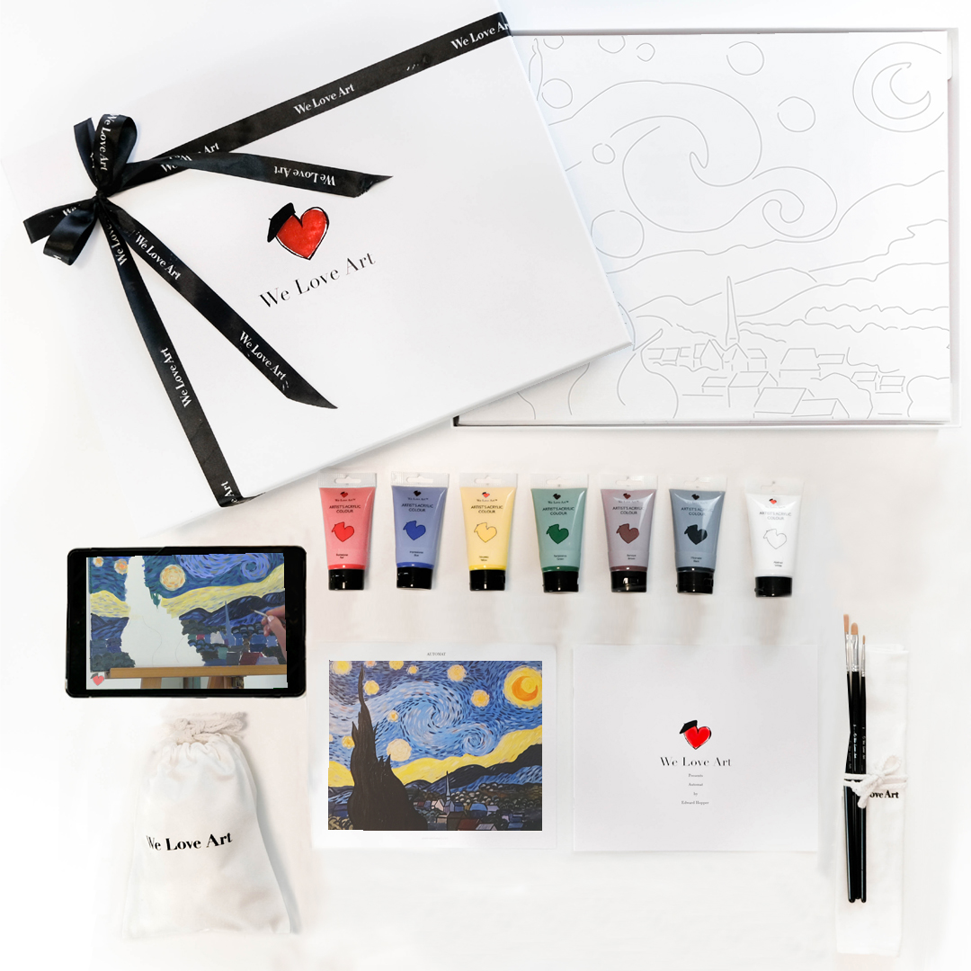 Join the thousands of people in the We Love Art community of all skill levels who have painted this masterpiece with our pre-sketched canvas, inspiring guidance and art materials. You will be shocked at how well you can paint when we gently give you the confidence to create this masterpiece.